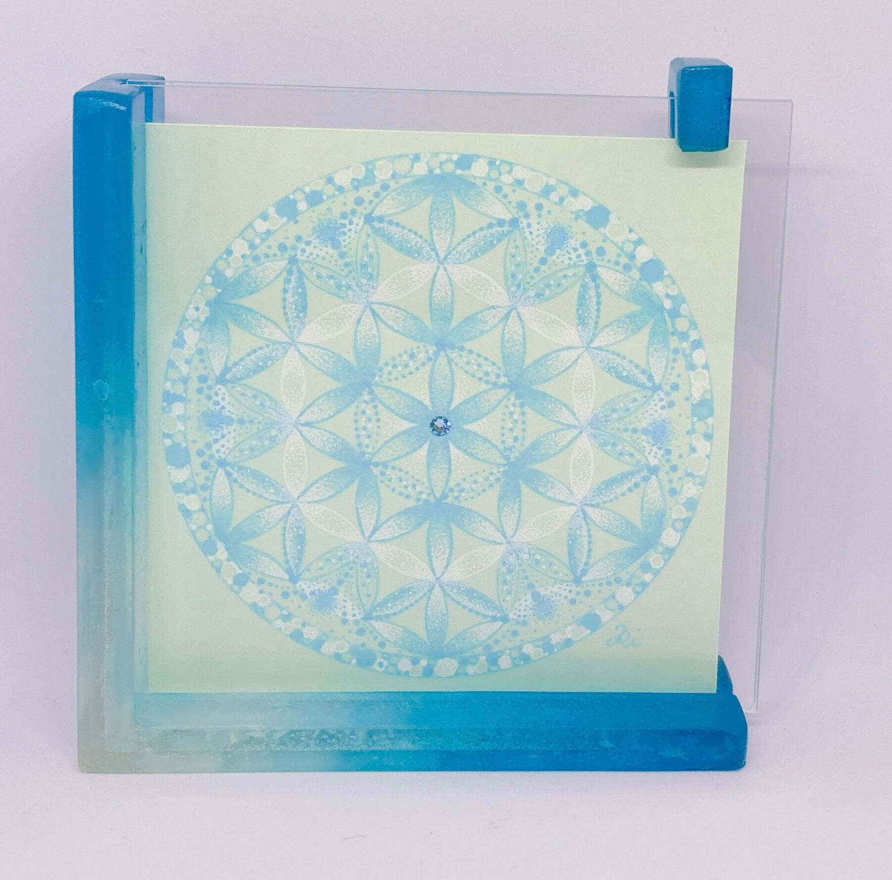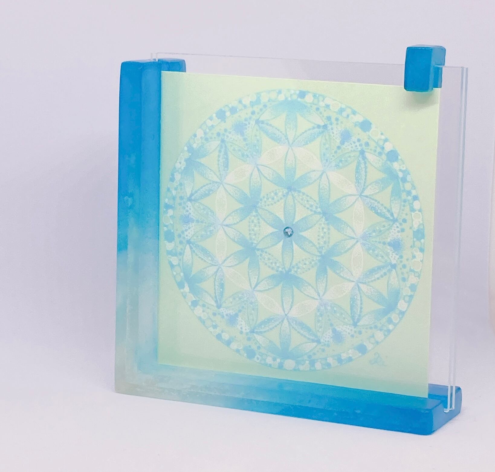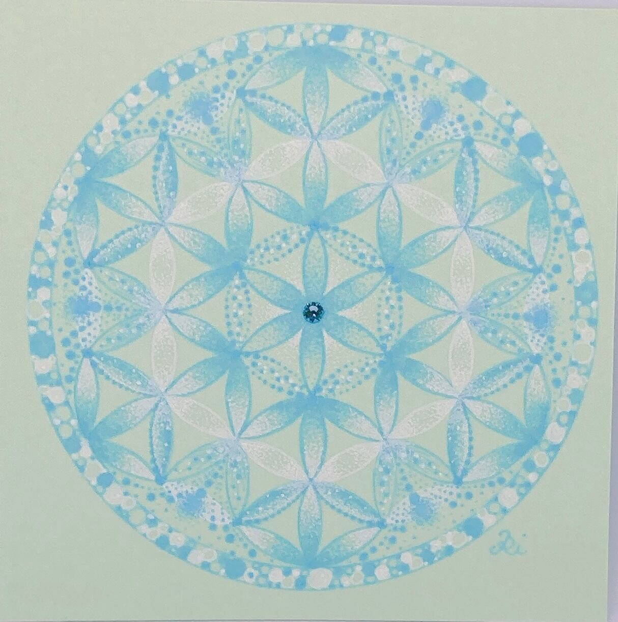 生命の循環と調和を象徴する「フラワー・オブ・ライフ」をベースに描いた曼荼羅アート。