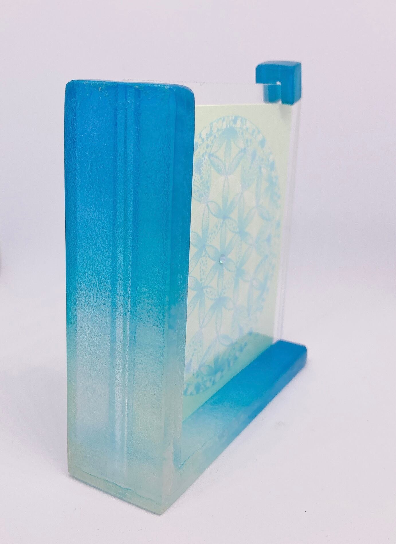 澄んだブルーと淡いグリーンの彩りが、春の大空を思わせる清らかな波動を広げ、空間と心をやさしく整えます。