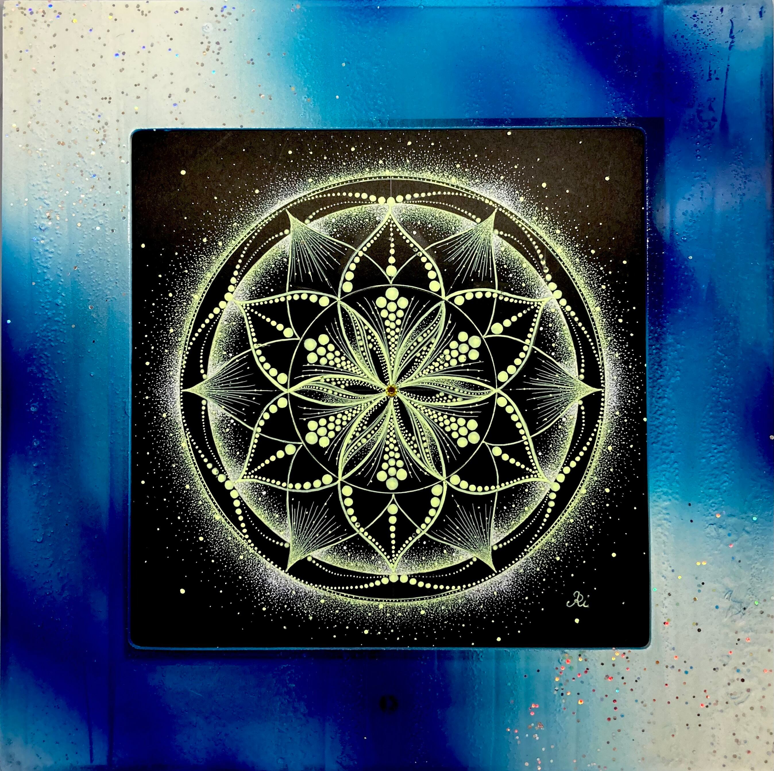 夜空に瞬く星々を思わせる曼荼羅アート。